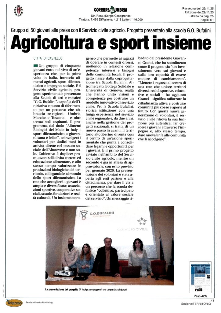 La Scuola di Arti e Mestieri G.O. Bufalini ha coinvolto cinquanta giovani in un’iniziativa dal titolo “Alimenti Biologici del Made in Italy + Sport dillettantistico = Gioventù sana e felice”